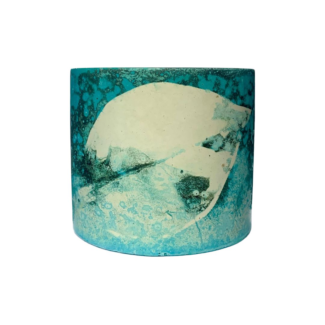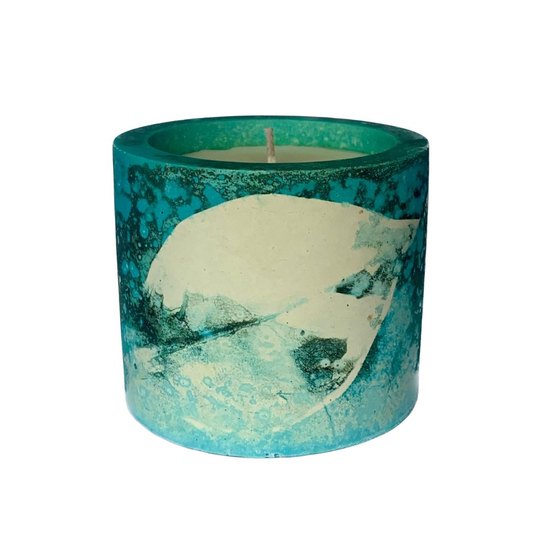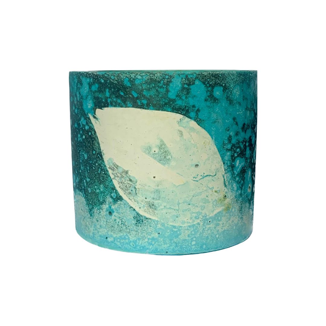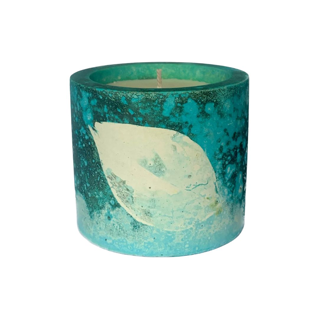 Handcrafted from cement and stained with copper, this candle reveals the natural patina of real fallen autumn leaves.