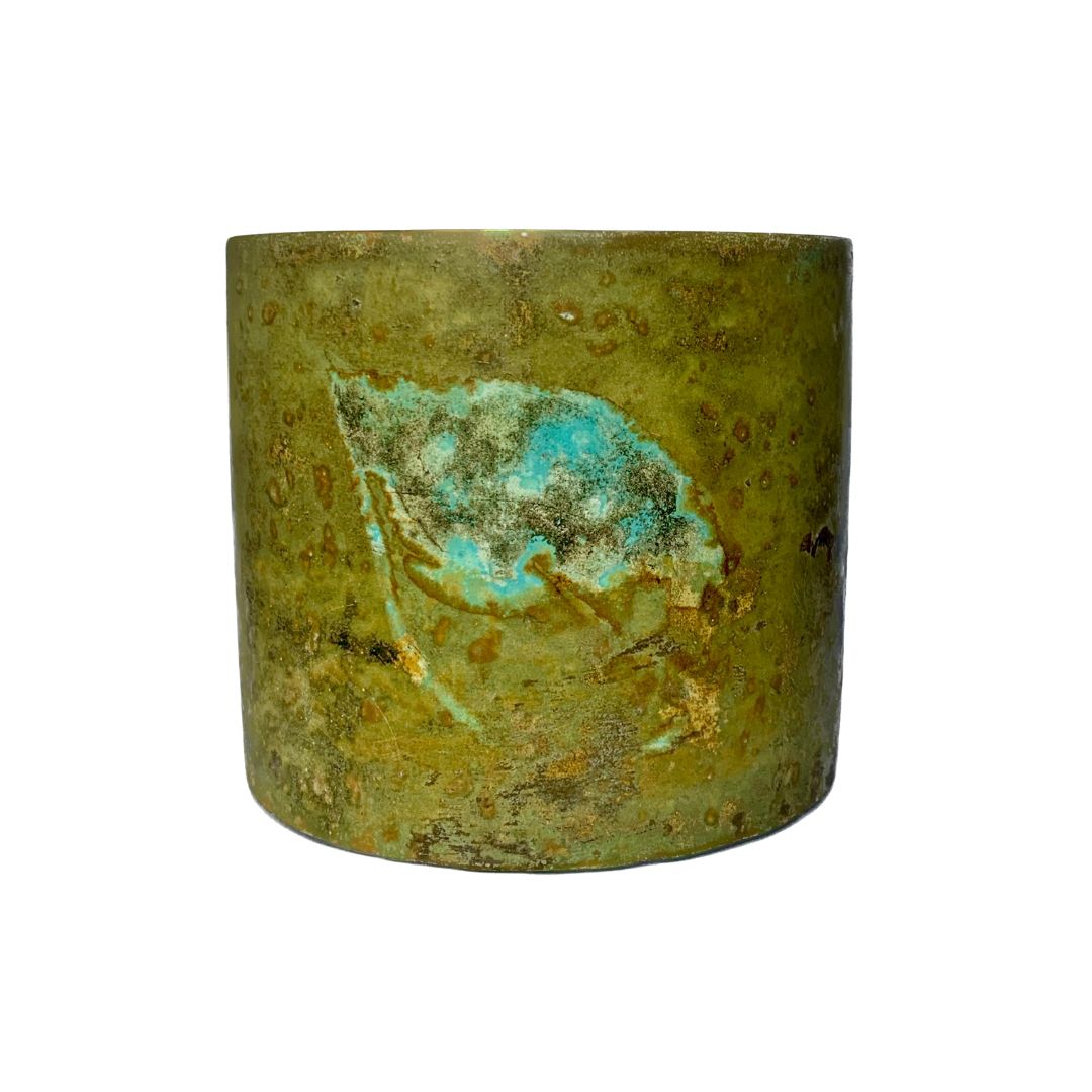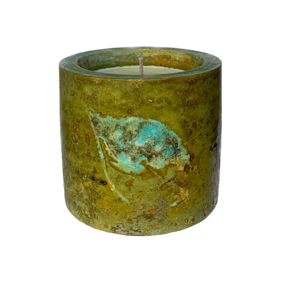 The copper and iron patina of this handcrafted cement vessel captures the delicate imprint of a real fallen leaf. Filled with natural, unscented soy wax, it offers a clean, gentle burn while bringing a touch of nature’s artistry into your space. Unique, modern, and reusable.