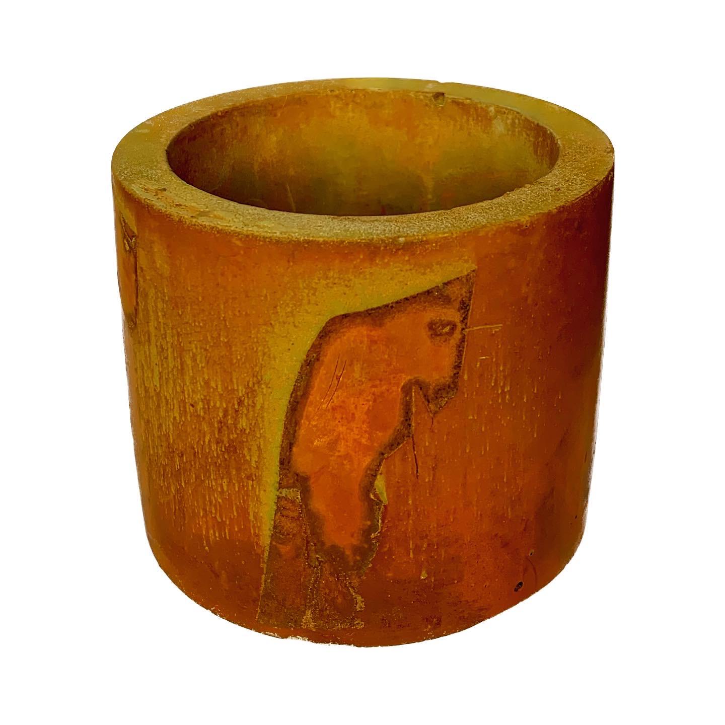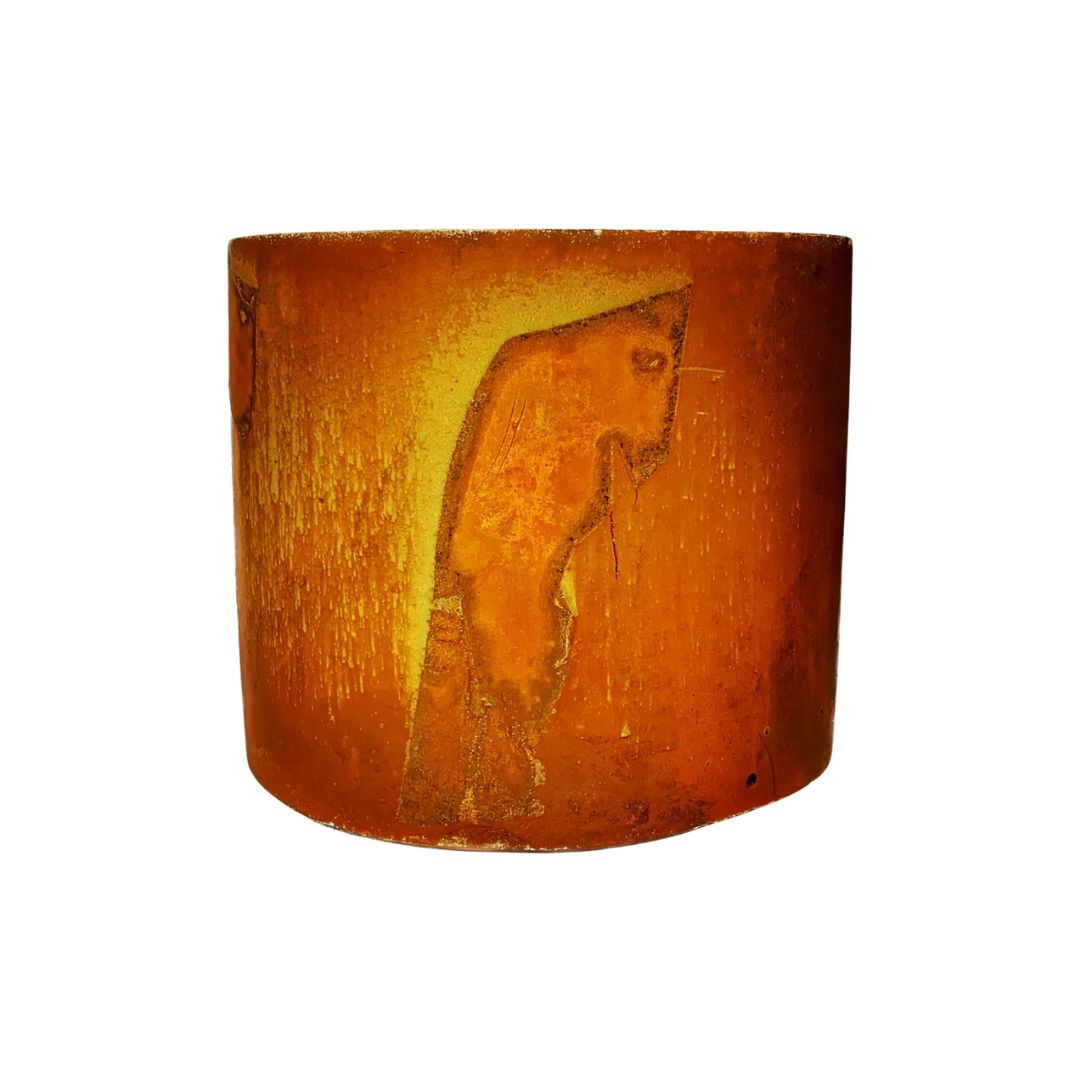 Rapture is a handmade cement candle, stained with iron. Deep oranges, earthy browns, and tawny red patinas portray the haunting impression