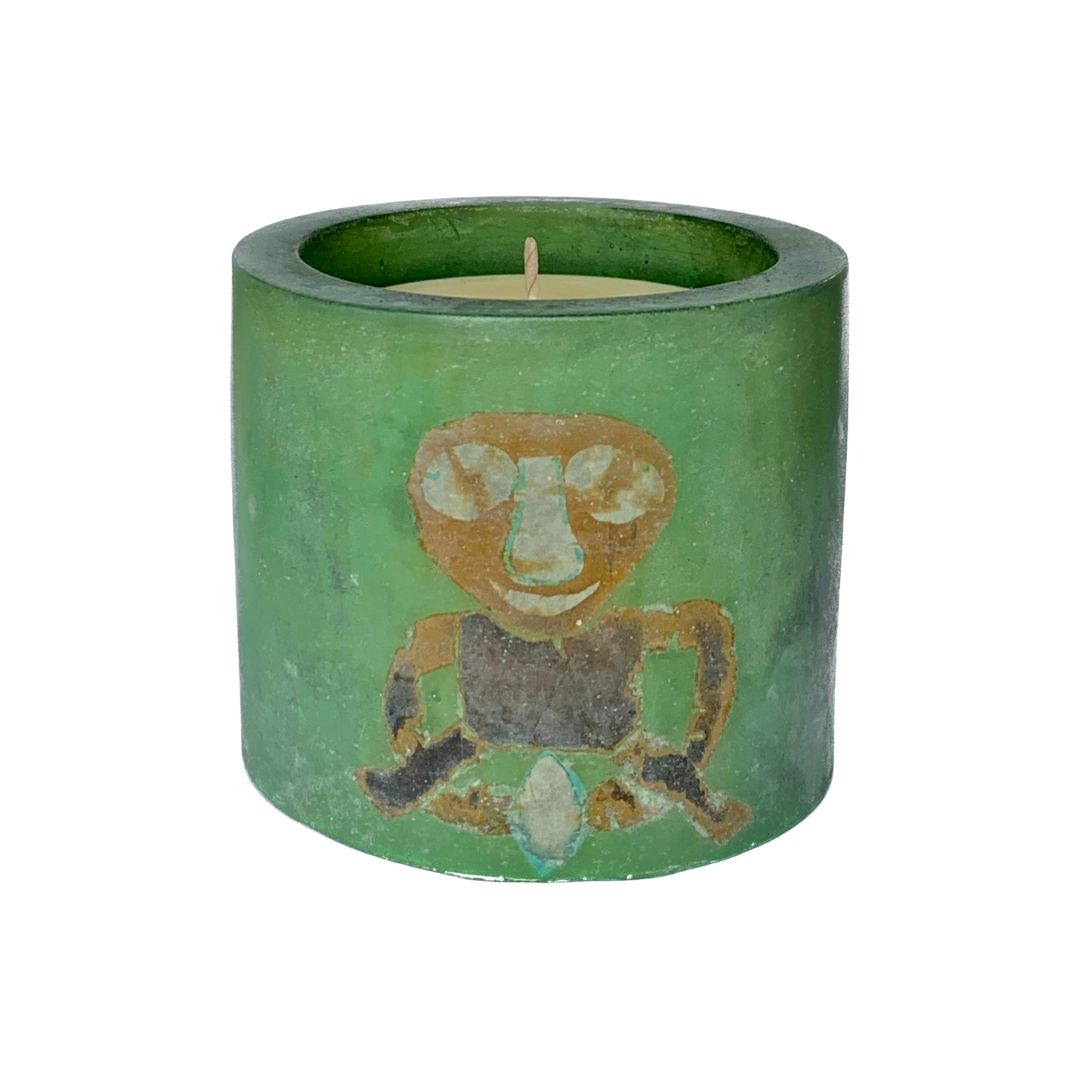 Stained with iron and copper, this candle captures the timeless, enigmatic form of the mythical Irish Sheela na Gig.
