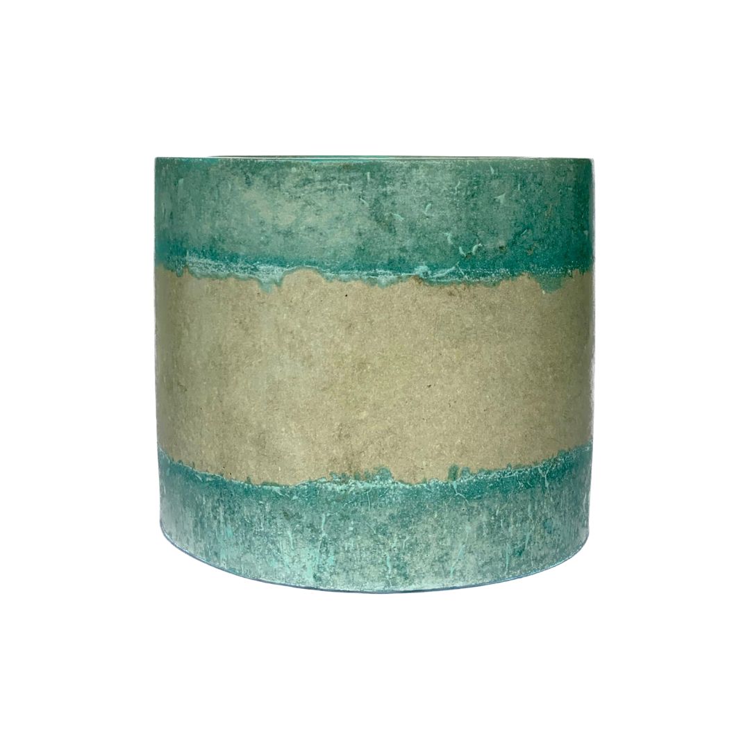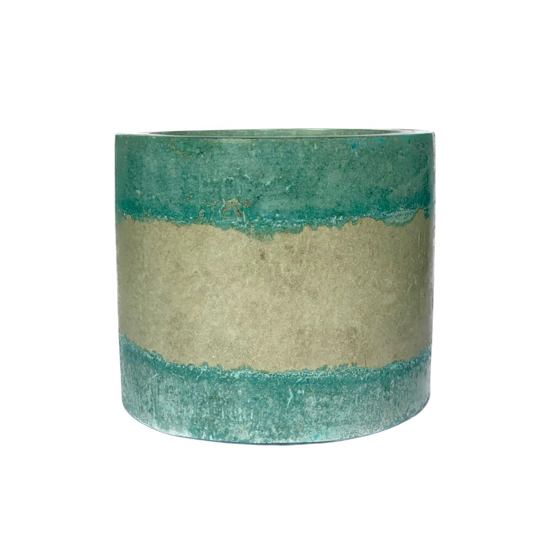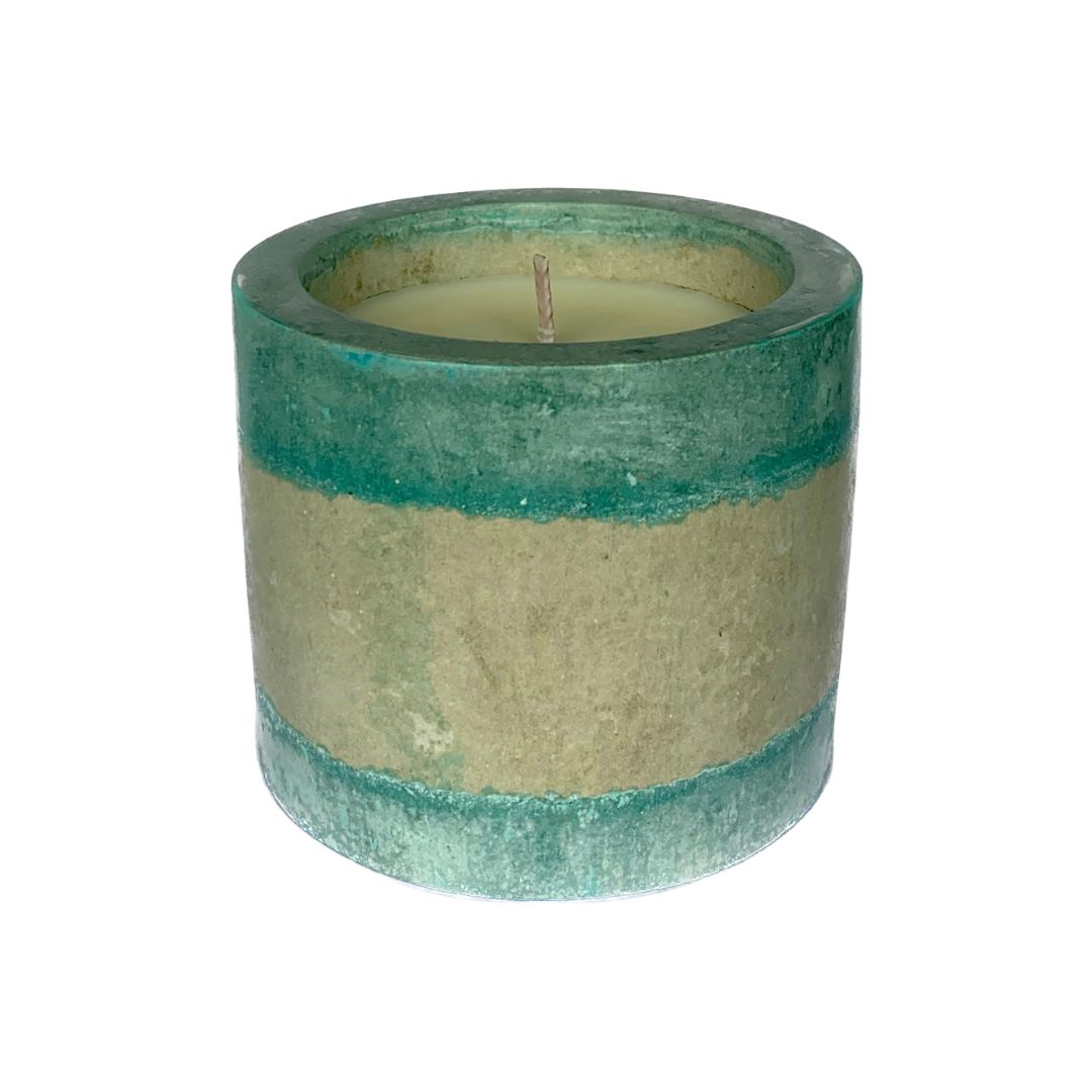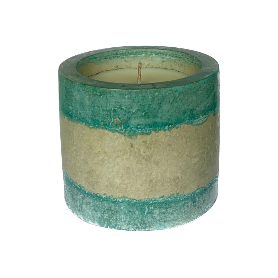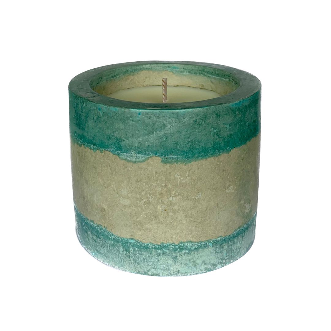 Tides is a handmade cement candle, stained with copper to unveil the deep blue sweep of shifting waters. Poured with natural, unscented soy wax for a clean burn.”