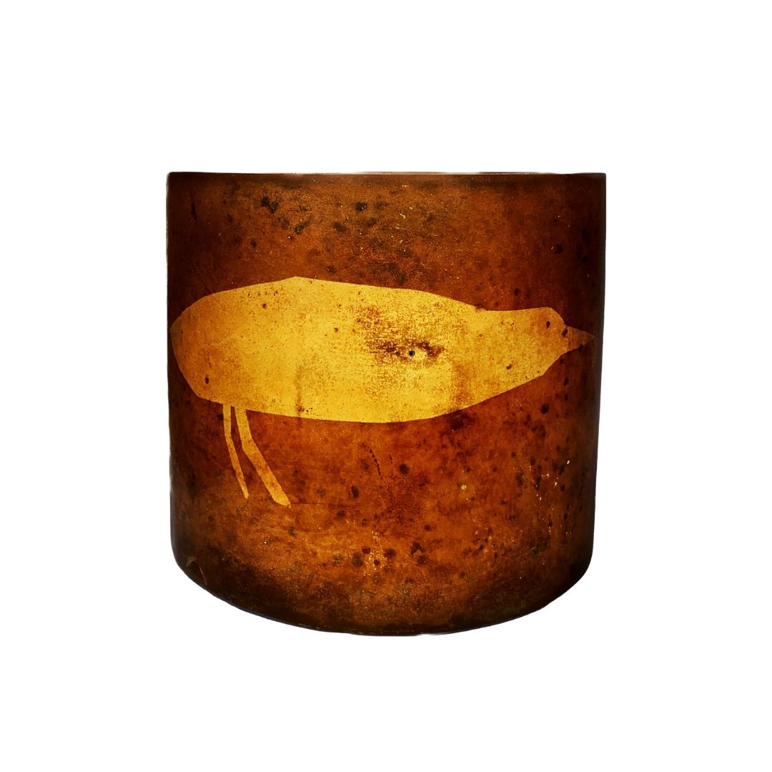 Water fowl is a handmade cement candle, stained with iron to reveal the fleeting image of a bird wading through still waters.