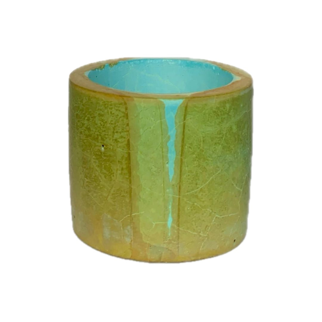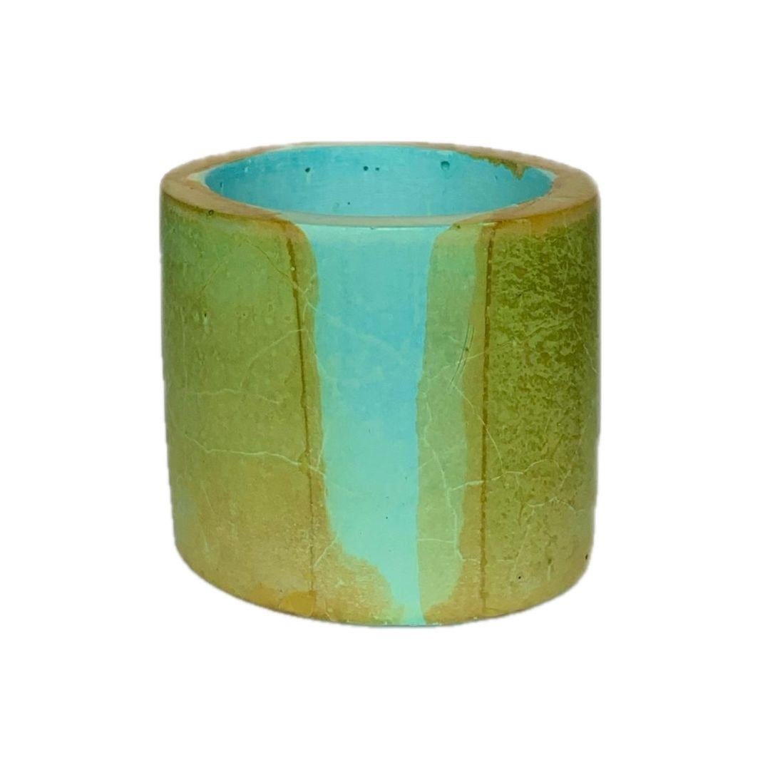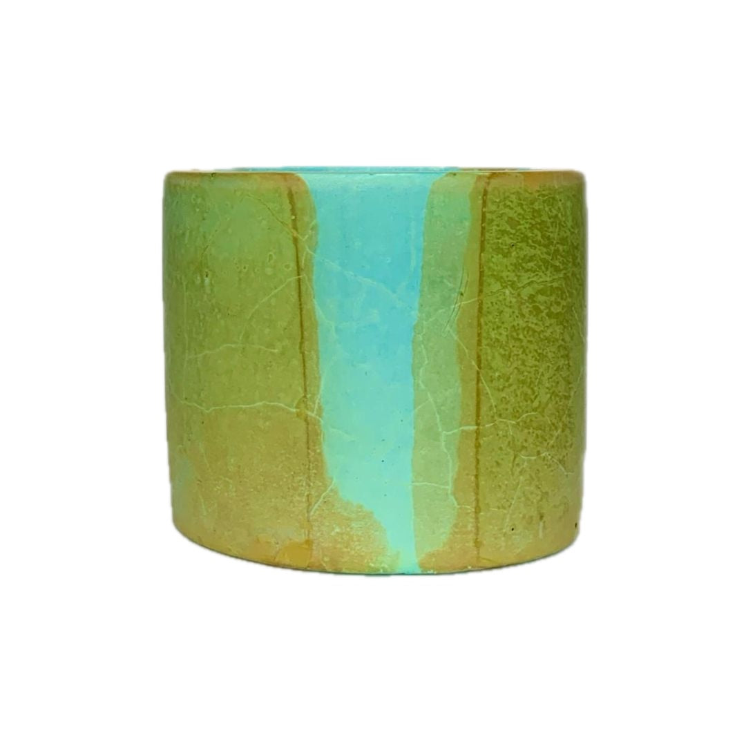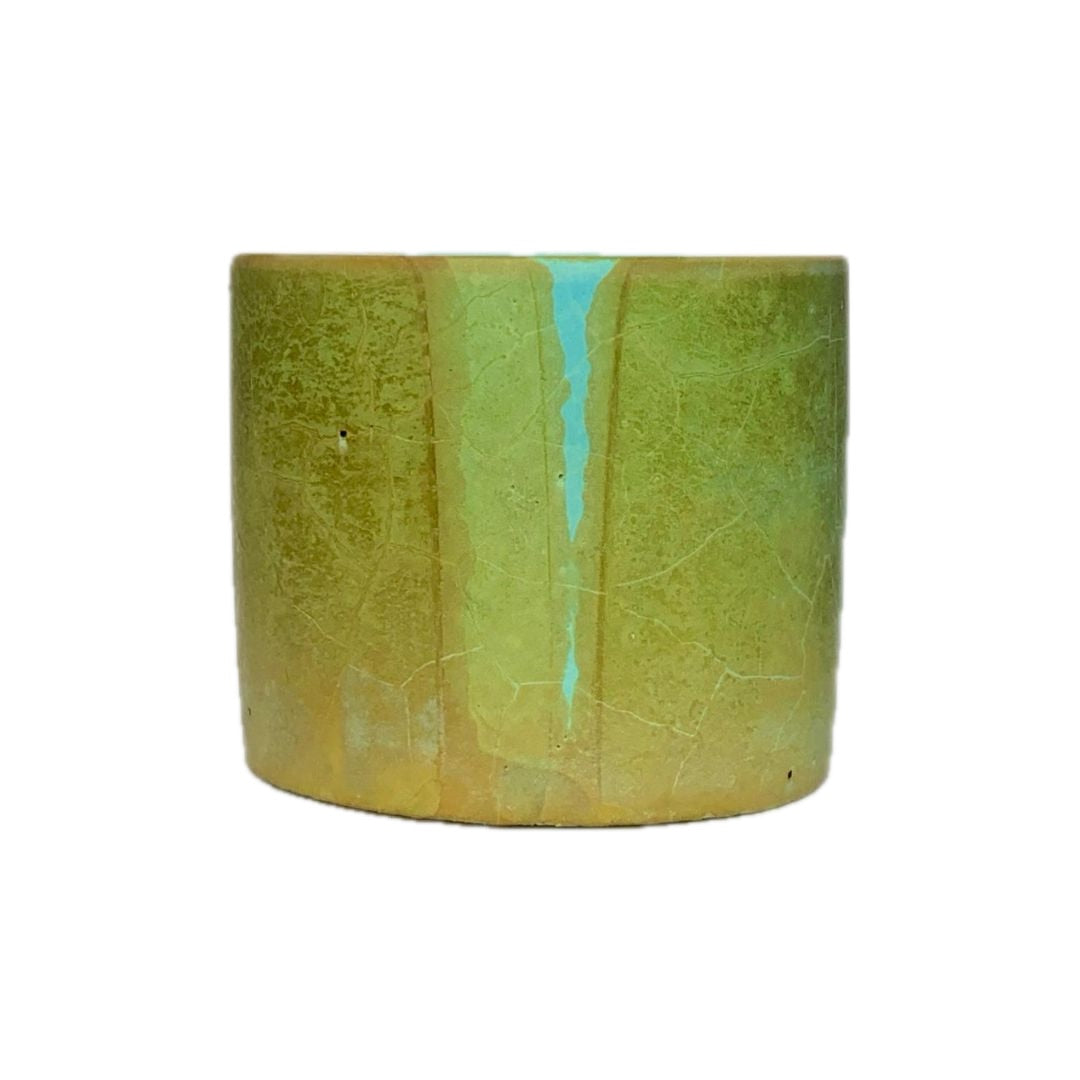 Handcrafted with natural, unscented soy wax in a striking copper- and iron-stained concrete vessel with vivid blue and green patinas. Minimalist, modern, and one of a kind.