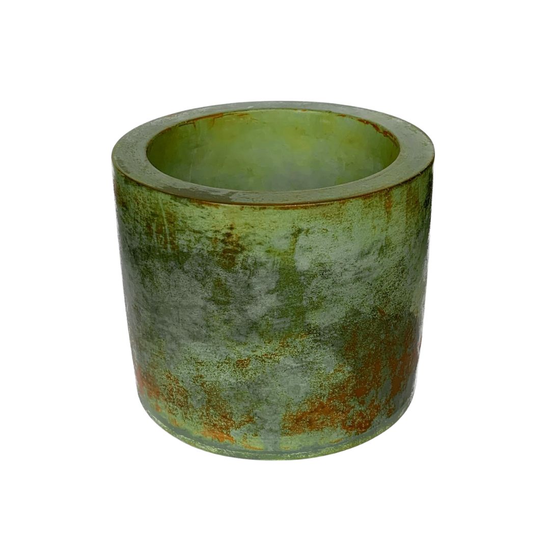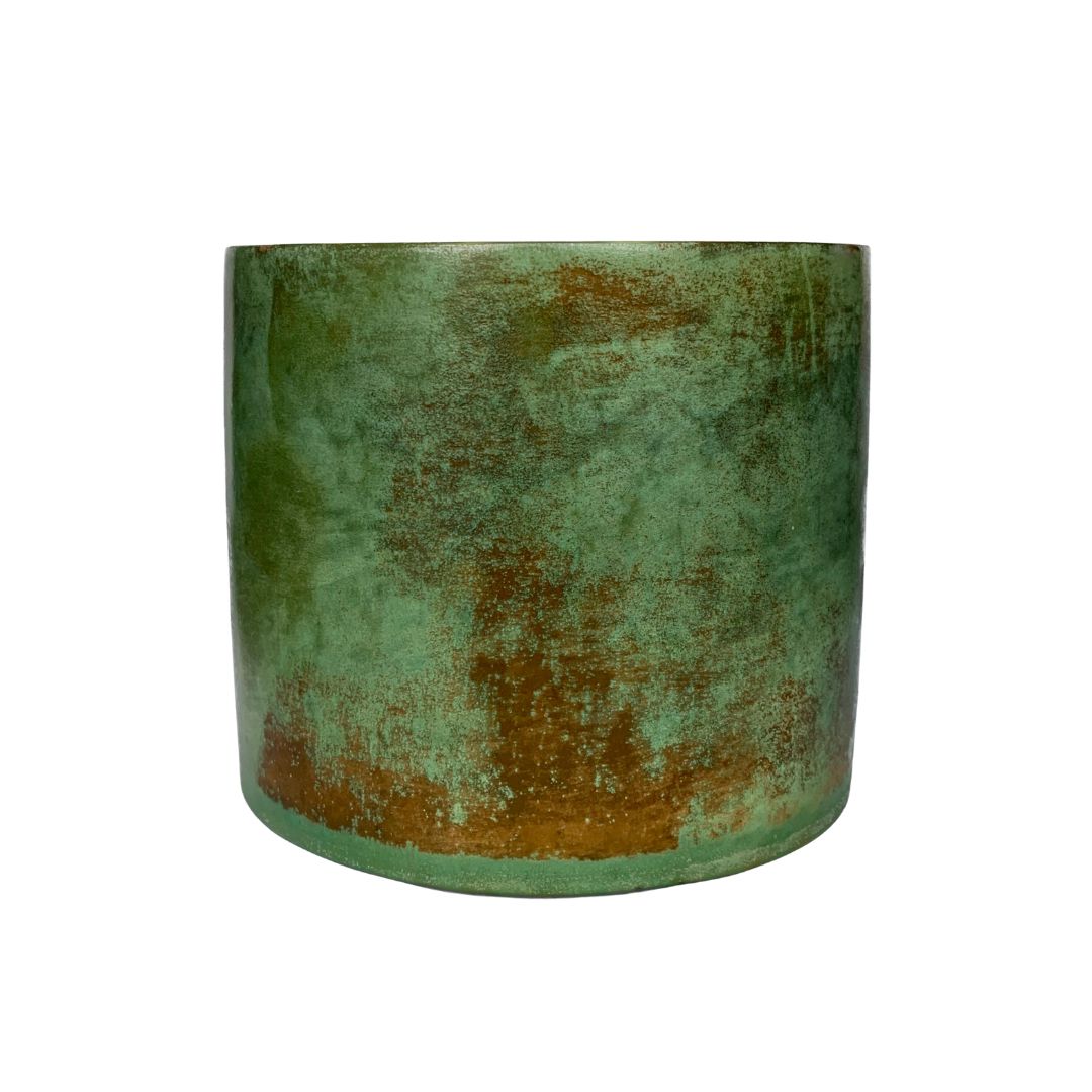 Wildfires is a handmade cement candle, stained with copper and iron to evoke shifting landscapes of green with vivid flecks of orange. Poured with natural, unscented soy wax for a clean, understated burn.